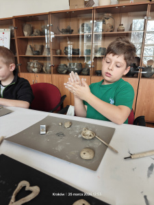Następnie udaliśmy się na zajęcia ceramiczne podczas których lepiliśmy małe formy z gliny tj.: paciorki, zawieszki, figurki. Nasi uczniowie to prawdziwi artyści!