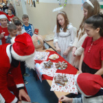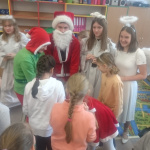 Jak to już w zwyczaju bywa Święty Mikołaj wraz ze swoimi pomocnikami rozdawał drobne podarunki wszystkim uczniom. Słodkie upominki sprawiły uczniom wiele radości.