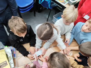 W listopadzie uczniowie klas pierwszych wybrali się na warsztaty do MPO. Podczas zajęć dzieci poznały zasady segregowania śmieci, obowiązujące na terenie Gminy Miejskiej Kraków.