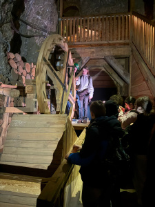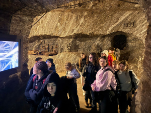 Zwiedzanie najstarszej kopalni soli w Polsce rozpoczęliśmy od zjazdu pod ziemię górniczą windą. Zjazd ten dostarczył wszystkim wielu emocji. Następnie długimi korytarzami przeszliśmy trasę turystyczną, poznając historię wydobycia soli oraz codzienną pracę górników. Podczas wędrówki duże wrażenie zrobiła na nas podziemna Kaplica św. Kingi, z pięknymi solnymi rzeźbami i ołtarzem wykutym w solnej skale. Przebywając pod ziemią, odwiedziliśmy również Komorę Ważyn – jedną z największych przestrzeni w kopalni. Mieliśmy w niej czas na odpoczynek i integrację.