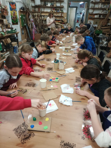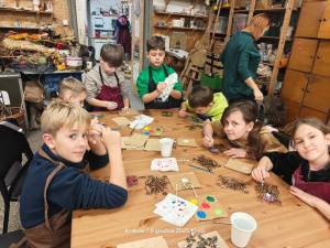 W grudniu klasy drugie wybrały się na rękodzielnicze warsztaty w Żywej Pracowni. Uczniowie wykonywali rysunki malowane na szkle dla bliskich im osób, którzy w styczniu mają swoje wielkie święto 🙂