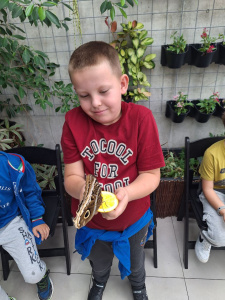 Uczestnicy wzięli udział w interaktywnej prezentacji o życiu motyli, potem uczestniczyli w zajęciach z mikroskopami stereoskopowymi i odwiedzili wolierę z żywymi motylami. Motyle siadały im na rękach, głowach czy spodniach. Oglądali także wylęgarnię motyli. Następnie dzieciaki z radością wzięły udział w warsztatach tworzenia bomb kwiatowych, z których w domu wyhodują kwietną łąkę. Na koniec był pyszny obiadek. Pozostały wszystkim wspomnienia i niezwykłe pamiątki.